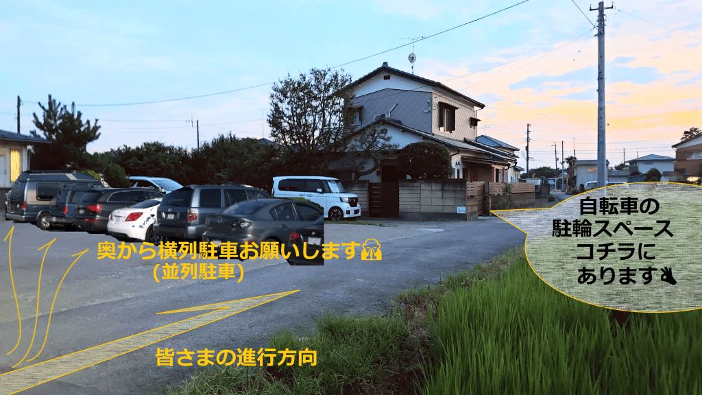 - ゆっくり目にお越しになり、既存メンバーさん達の駐車方法を真似て頂くのがおすすめです👌